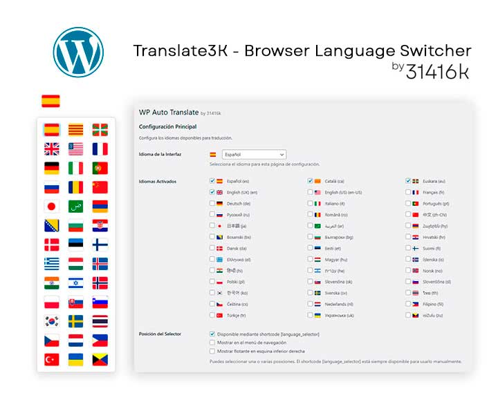 Este plugin permite añadir un selector de idiomas a tu sitio WordPress aprovechando la tecnología de Google Translate para traducir automáticamente las páginas.